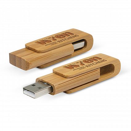 Swivel flash drive which is manufactured from eco-friendly bamboo. It has 4GB of memory with a USB 2.0 interface and data uploading is available on request. Wood is a natural material which produces unavoidable variances in the grain pattern, colour and branding.